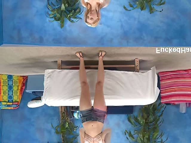 All oiled beautiful masseuse Lana Rhoades gets teased by her client