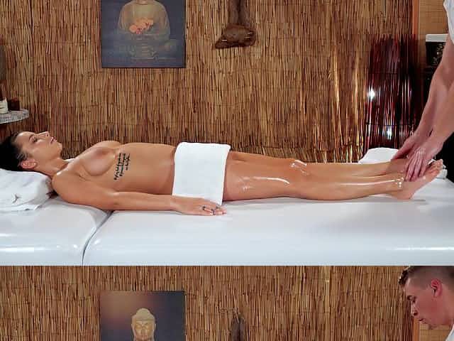 Oiled wife Nelly Kent massaged and fucked by a lucky man. HD