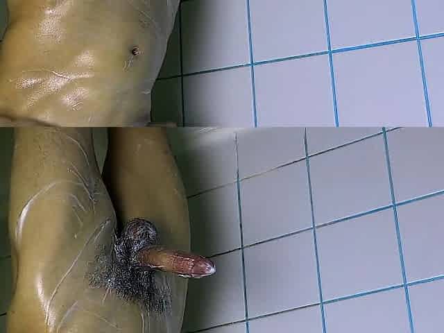 hawt oiled guy massages himself hard and gently and arouses his large slippery hard jock