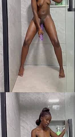 Big Boobed Blonde Masturbates With A Dildo In The Bathroom