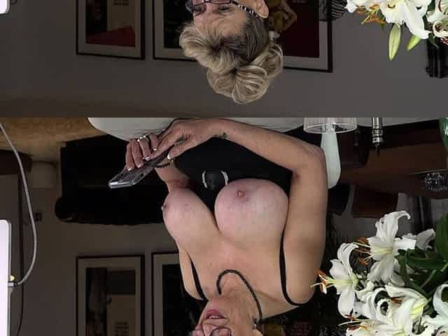 Curvaceous Cougar Dominno teases with her massive naturals and ink in a steamy self-pleasure session