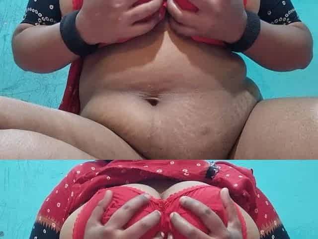 With Using Pink Dildo in Red Silk Night Dress