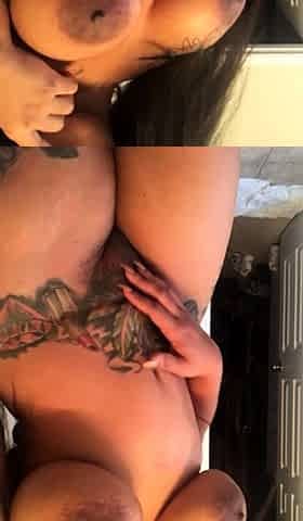 Wet tattooed raven babe Sahron with big boobs masturbates