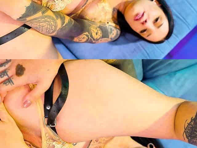 Wet tattooed raven babe Sahron with big boobs masturbates