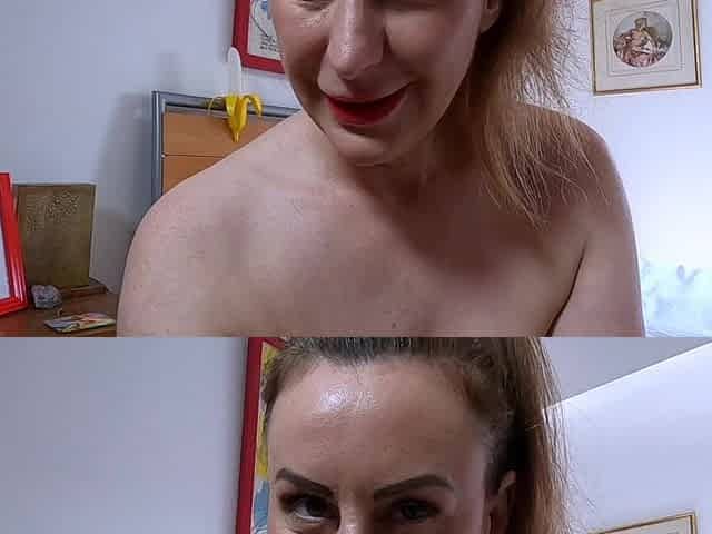 MILF with small tits on webcam shoves funny toys in her pussy.