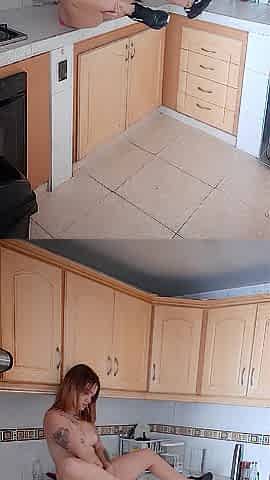 Latin babe worker giving herself tons of lesbo joy in her boss's kitchen