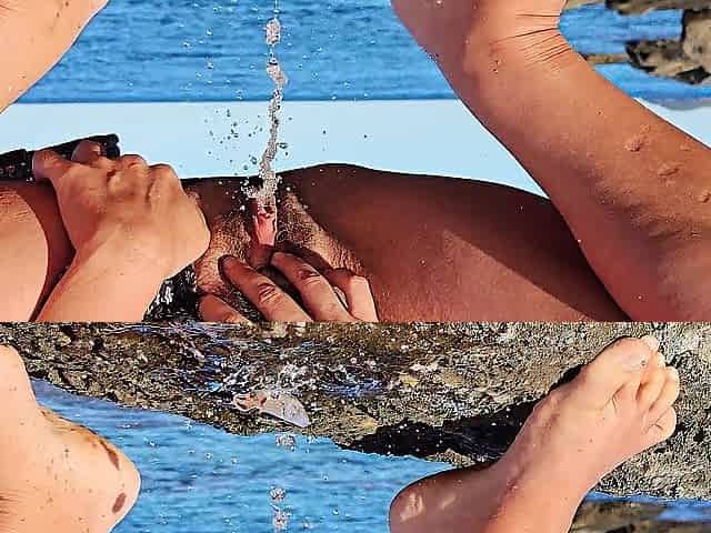 On the beach, 1st time stepmom allows me to see him masturbate and I stroke