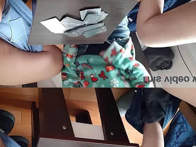 Bambolina Piccolina di nascosto spiata si tocca sotto il tavolo