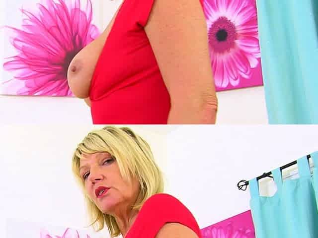 Blonde gilf Amy is not wearing underwear
