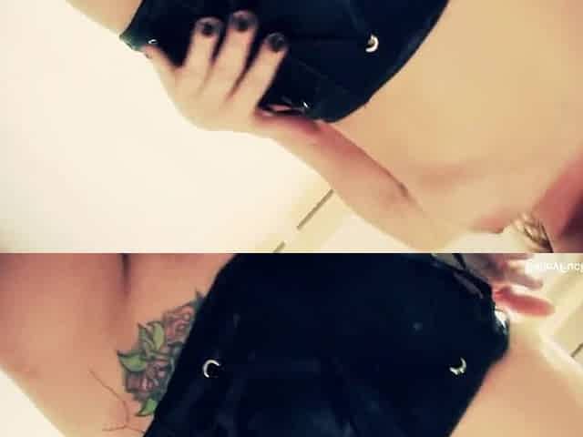 Tattooed brunette hair Jezebelle Bond teases and fingers herself