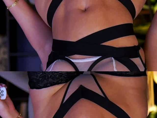 Curvy Blonde Bombshell Poses in Sexy Harness Lingerie