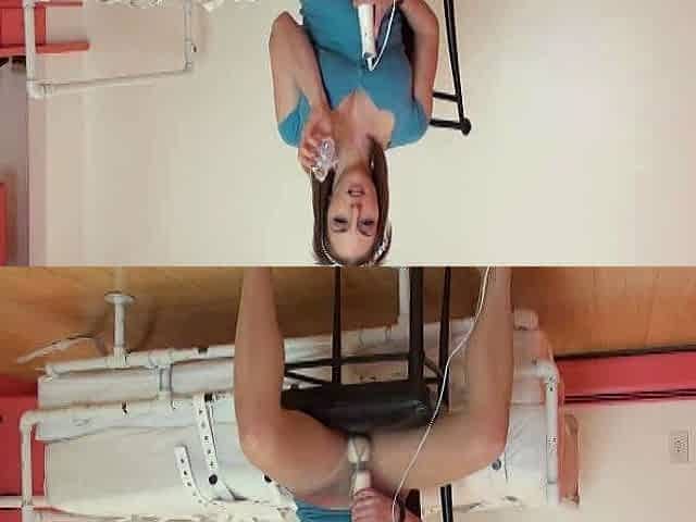 Skinny teen brunette masturbating with toy