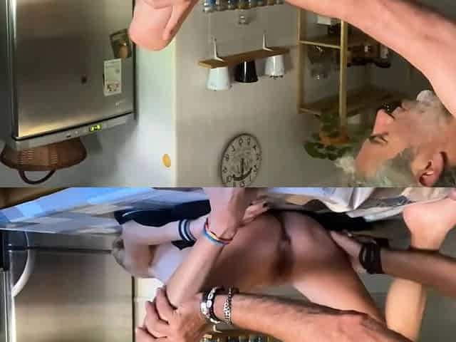 Blonde Amateur Masturbates and Eats Cream in the Kitchen