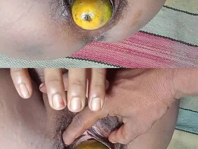 Brother-in-law Put Mango in Sister-in-law's Pussy