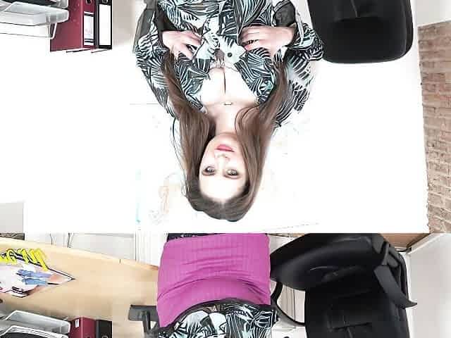 The buxom secretary, MILF known as Krizzi, engages in self-pleasure in her workplace.