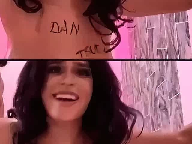 Hot amateur busty brunette masturbate in webcam