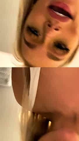 Close up with blonde hottie blowing a large dick