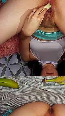Fucked Herself with Three Bananas!