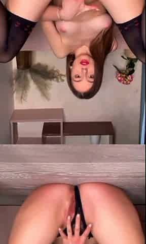 Large Titties Masturbate and Screwing Large Sex toy at the Kitchen