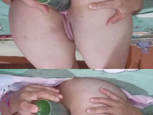 Beautiful Big Ass Destroys Her Tight Anus with a Big Cucumber