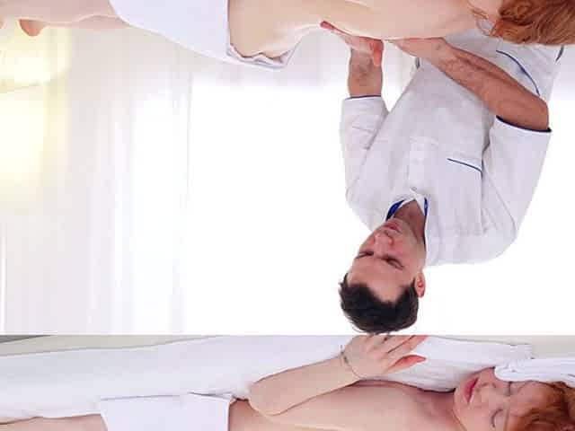Redhead girl tries a new massage