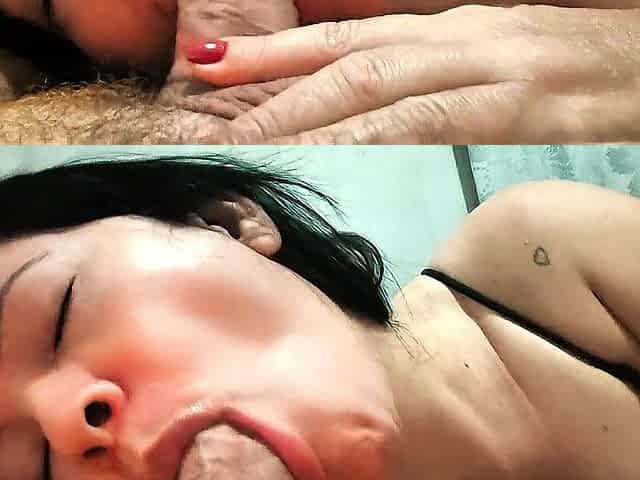 Obese stud getting awesome oral-sex from brunette hair hotty