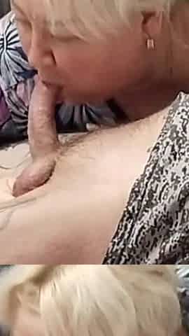 Mother-in-law Gives a Deep Blowjob and Swallows Cum