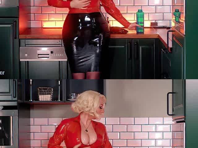 Sexually excited Teacher mother I'd like to fuck in latex rubber suit.. sluggishly polishing curvy body.