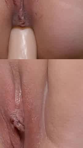 Both Hairy Holes Fucked with Glass Dildo - Part 1