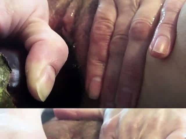 Mature Amateur Hairy Girl Masturbating with Aubergine
