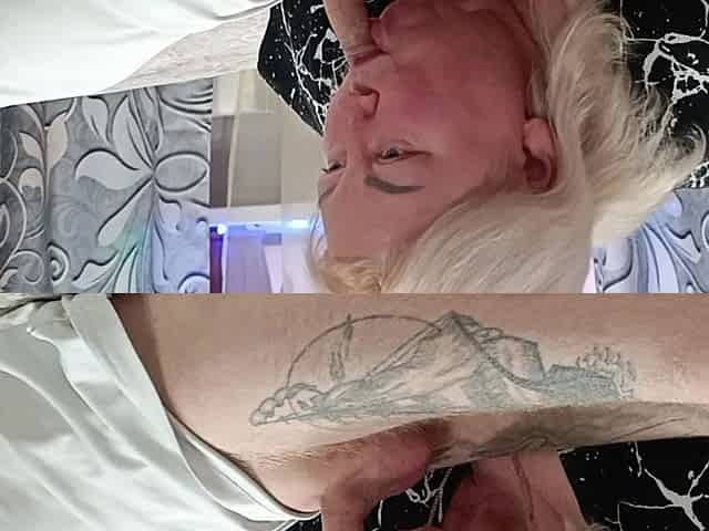 Huge guy humiliates gorgeous blonde milf with a deep throat blowjob