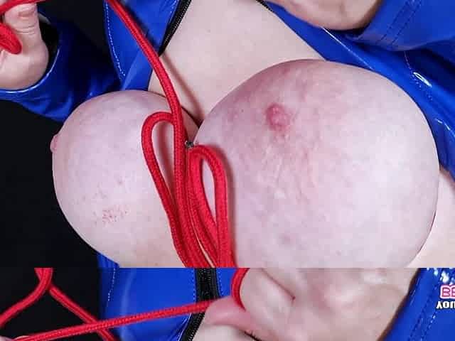 Aunty's Big Tits in Her Tight Blue Pvc Dress