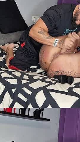 insatiable wife, military clothed, older wife masturbates his large bazookas shaking him