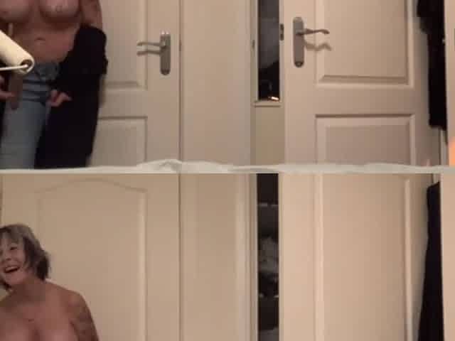 Naked bath towel action with Littlevixen and her electro-hitachi