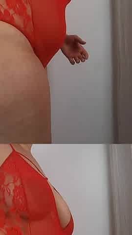 Mature blonde stunning in her red lingerie and stockings has