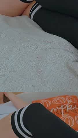 MILF with Big Thighs in Long Socks Masturbates While Watching Porn.