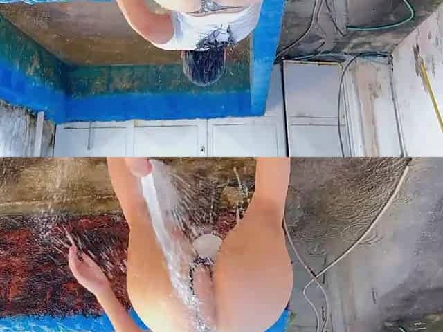 MY STEPMOTHER BATHING IN THE PATIO IN A BIKINI WITH HER UNBELIEVABLE BOOTY