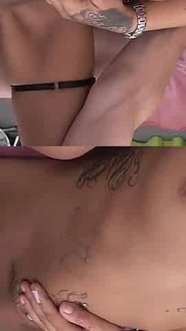 Hot Tattoed Skinny Brunette Fucked on Latex Mat