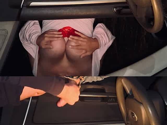 Voyeur in the Car on a Rest Area, I Jerk Him off with My Breasts, Empty His Balls, He Uses Me Like a Whore and Squirts in My Mou
