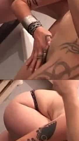 Sexy Tattooed Babe Strips off and Starts Riding a Loaded Rod