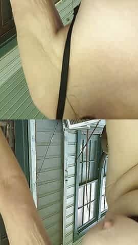 "Naughty on the porch and I shake and cum!"