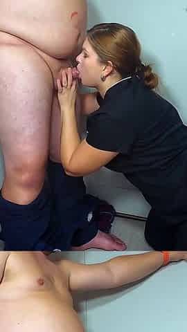 Hot MILF Worshipping His Big Belly and His Cock Taking Load on Her Face