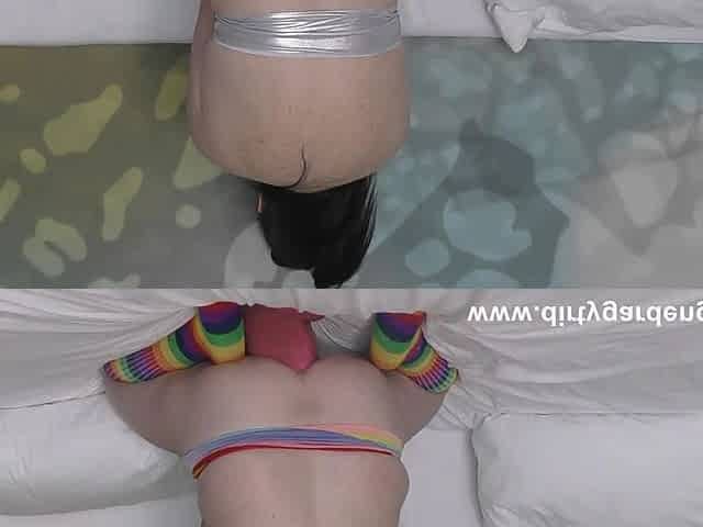 Extreme Anal Dildo Fucking & Prolapse in Rainbow Stockings