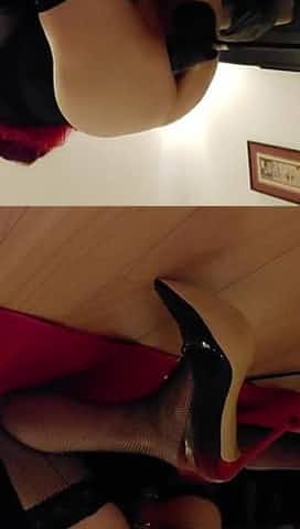 Horny guy slipping her head under pantyhose waistband to lick gals asshole