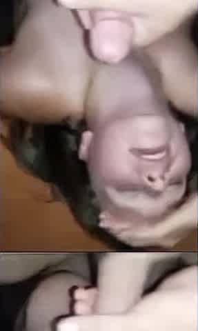 She chokes on his cock