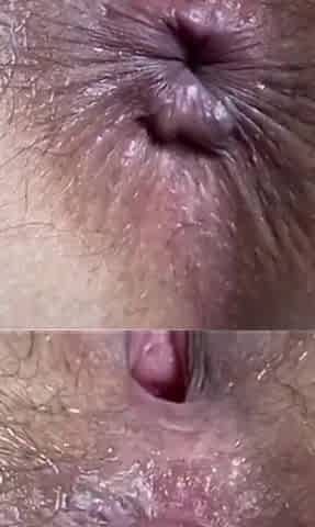 Anal gap in close-up 4K, all the hairs are visible. Curly butt, drilled by frequent anal sex. Part 1