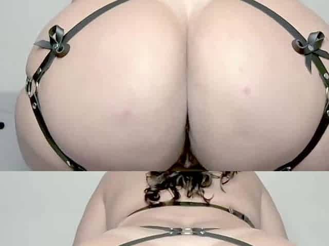 Anal penetration with a thong-on. Glamorous fat lesbo with obese butt cheeks POV.