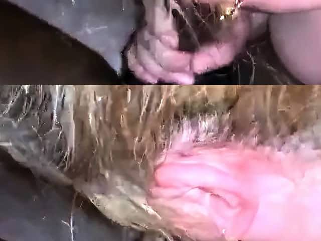 She is rubbing her pussy with bbc