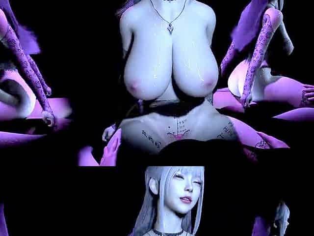 Voluptuous milf Exdoll Official rides a huge cock in this animated fantasy