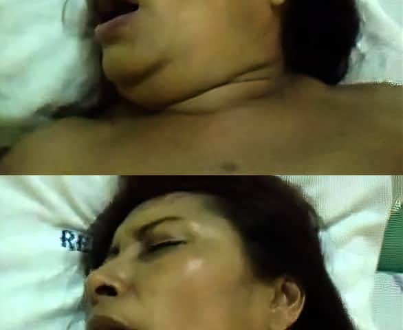 Overweight aged woman with large bra buddies